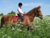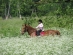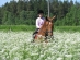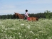 Meitenīte un zirgs suņburkšķos.